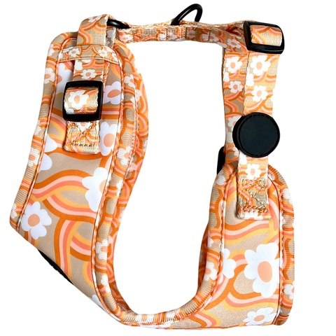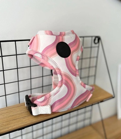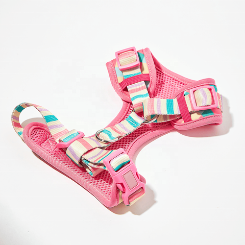Duurzaam Polyester & Neopreen Gepersonaliseerde Roze Lijn Herhaling Ontwerp Hondentuig Custom Hondenharnas Met Logo Naam Patch