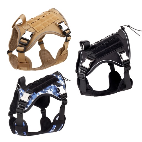 Custom Patroon Zonder Trekkracht Huisdier Tactisch Harnas Heavy Duty Training Train Print Hondenharnas Met Metalen Gesp En Bevestigingspakketten